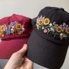 Orange Flower Hand Embroidered Baseball Hat for Women, Embroidered Denim Cap, Vintage Hat For Woman, Embroidered Baseball Cap