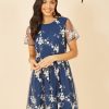 Roman Black Embroidered Trim Stretch Jersey Shift Dress