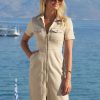 Sosandar Natural Short Sleeve Zip Front Denim Dress With Pockets